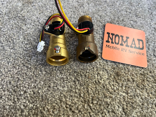 If you have an on demand water heater you have a few more components that can break. One of the most catastrophic to the hot water heater is the copper water line that wraps around the heating section. Once this breaks its cheaper to replace the whole water heater instead of repairing the broken one. The labor to pull the heater out and repair the line can be expensive. The other component that most often breaks is the flow sensor, pictured below. This sensor is typically made out of brass or plastic. This is a best case scenario is you have freeze damage to your water heater.